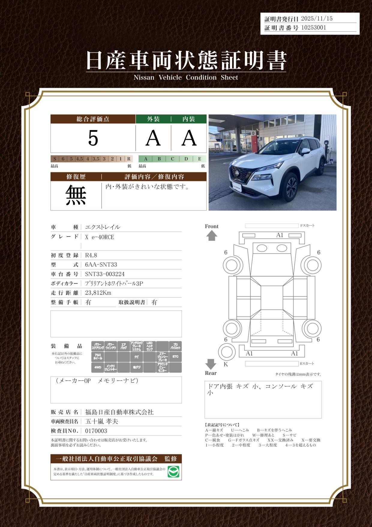 車両保証(エクストレイル X e-4ORCE:福島日産自動車(株) ユーカーズ会津一箕町)