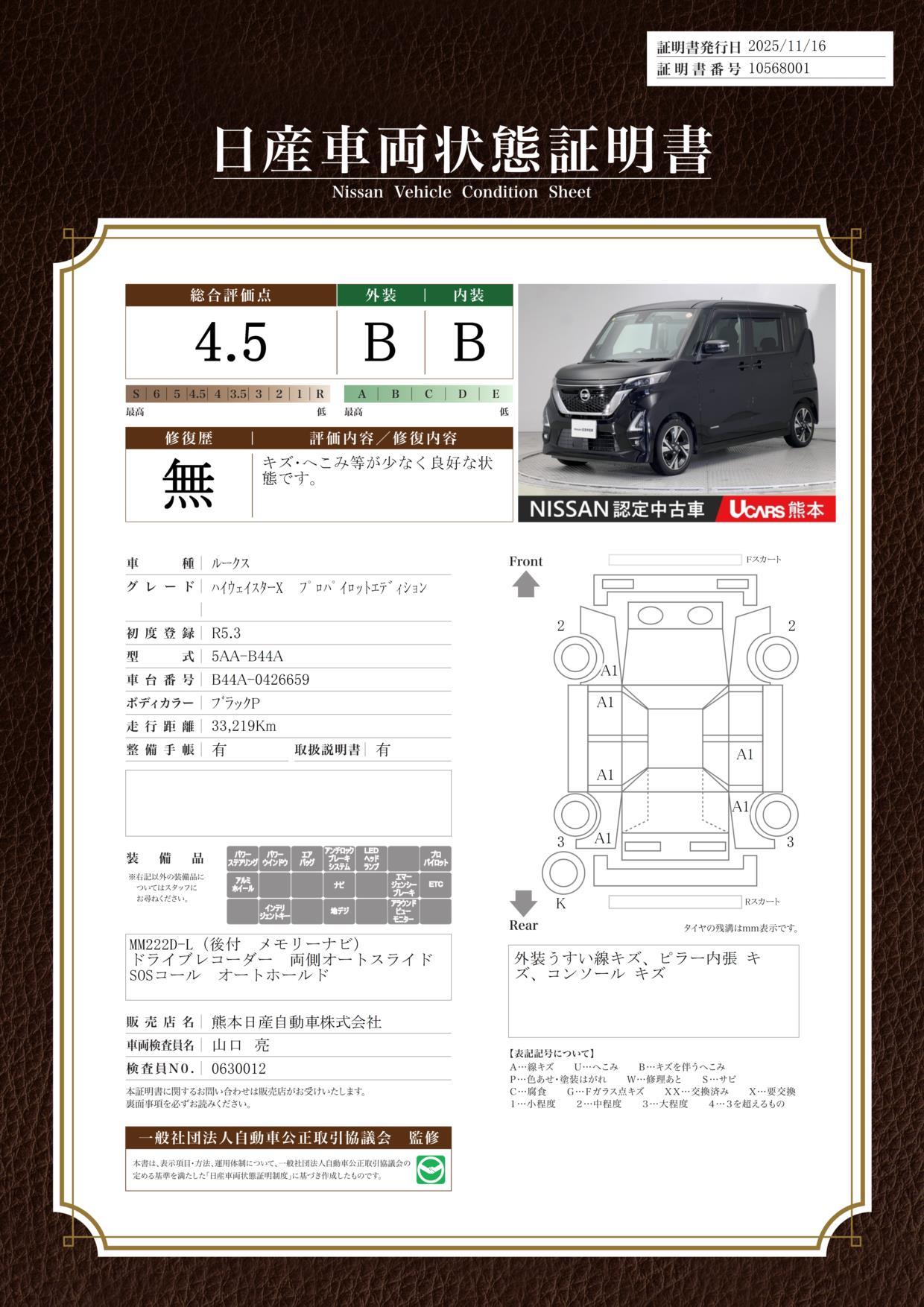 車両保証(ルークス ハイウェイスター X プロパイロットエディション:熊本日産自動車(株)ユーカーズ熊本)