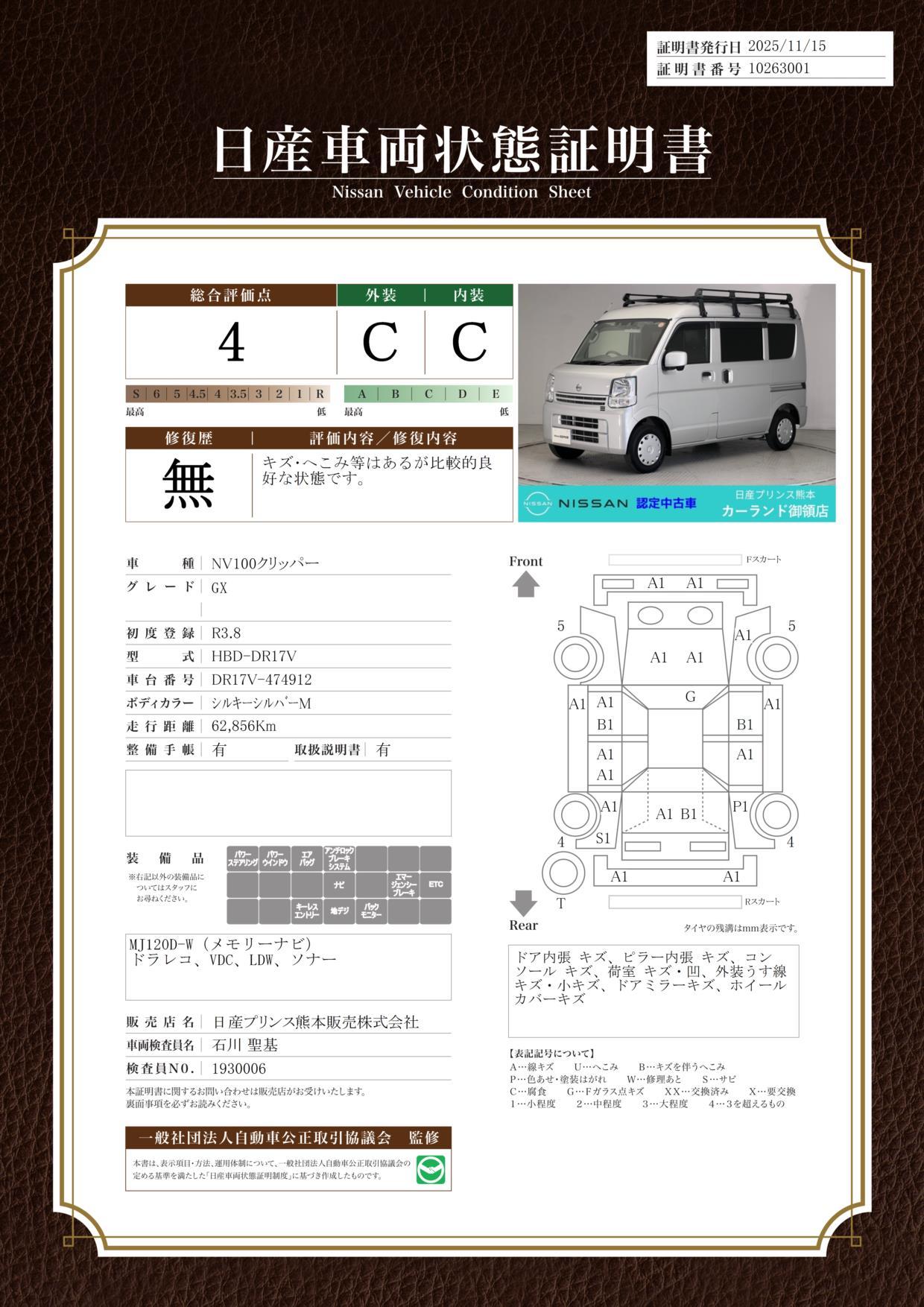 | 車両状態評価書 | ※クリックすると開きます![]() |