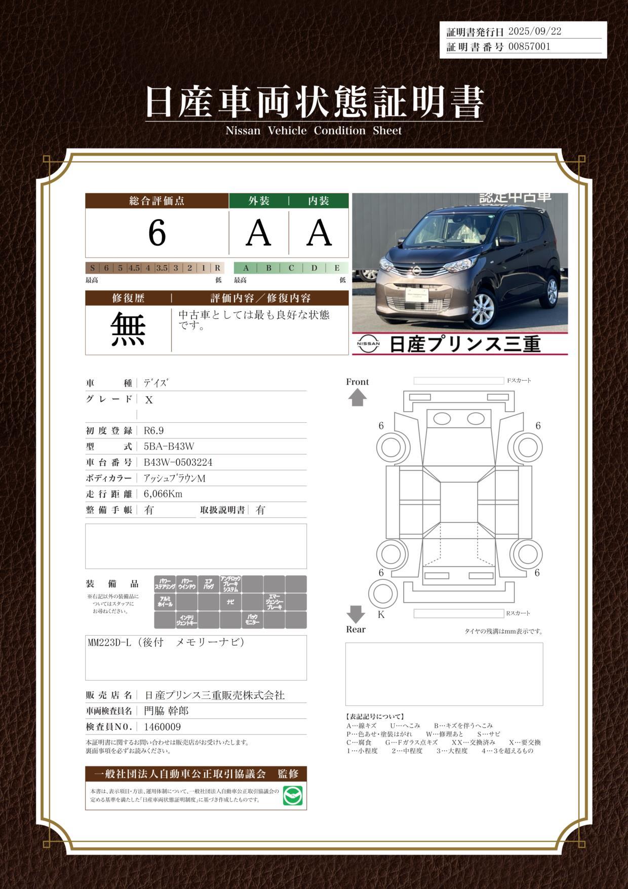 | 車両状態評価書 | ※クリックすると開きます![]() |