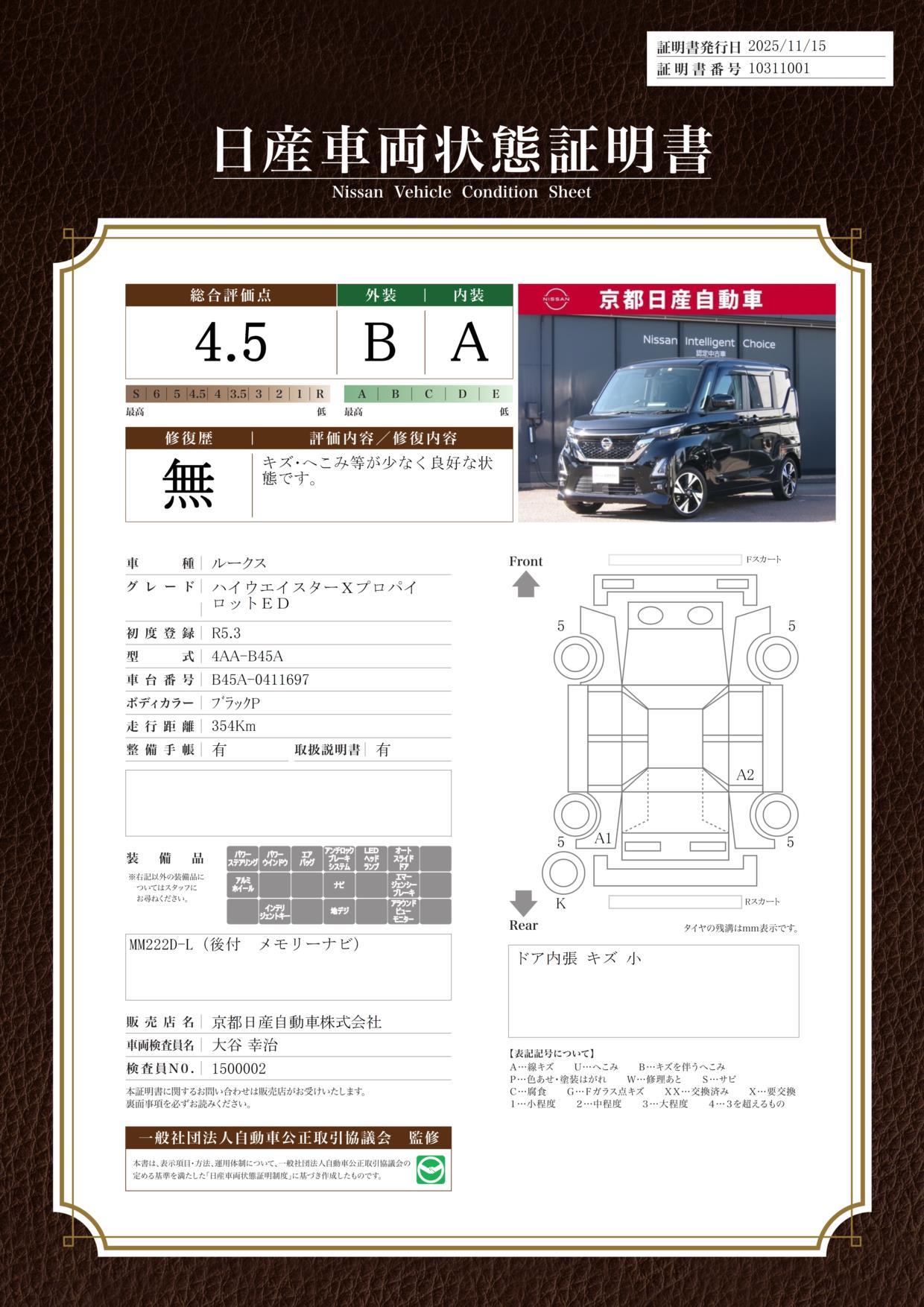 車両保証(ルークス ハイウェイスター Gターボプロパイロットエディション:京都日産自動車(株)カーメッセ久御山U-Cars)