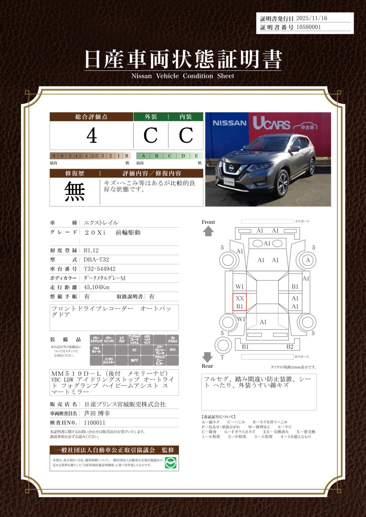 車両保証(エクストレイル 20Xi:日産プリンス宮城販売(株) 石巻中古車センター)