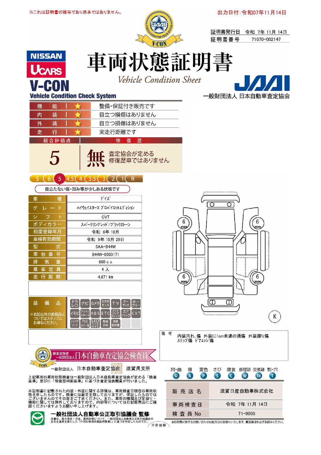 車両保証(デイズ ハイウェイスター X プロパイロットエディション:滋賀日産自動車U-CARファクトリー彦根)