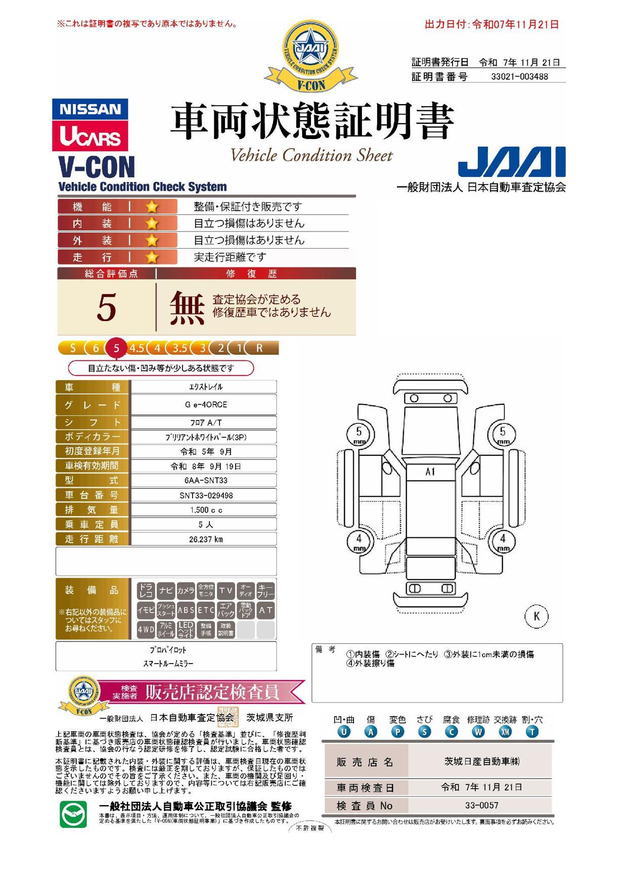 車両保証(エクストレイル G e-4ORCE:茨城日産自動車(株)カーミナルひたち野うしく)