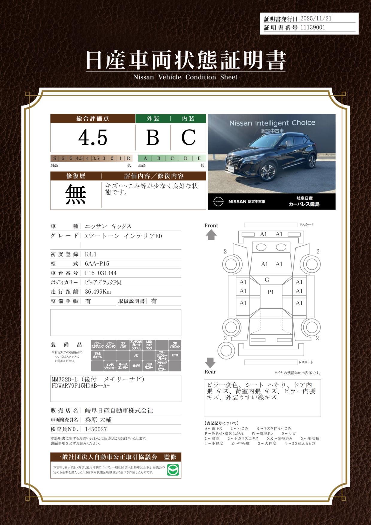 車両保証(キックス X ツートーンインテリアエディション:岐阜日産自動車(株) カーパレス鏡島)