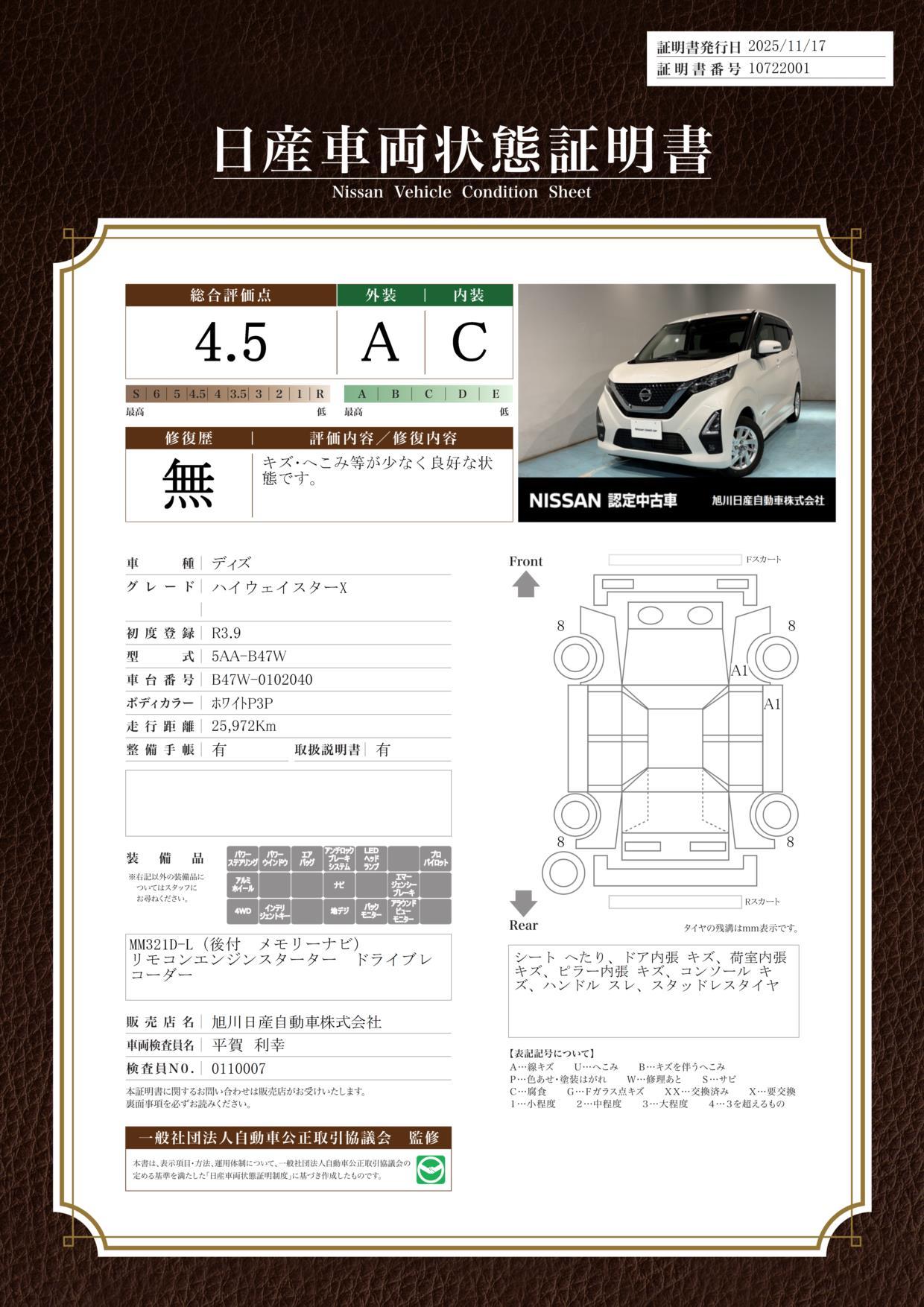 車両保証(デイズ ハイウェイスター X プロパイロットエディション:旭川日産自動車(株)カーパーク神居)