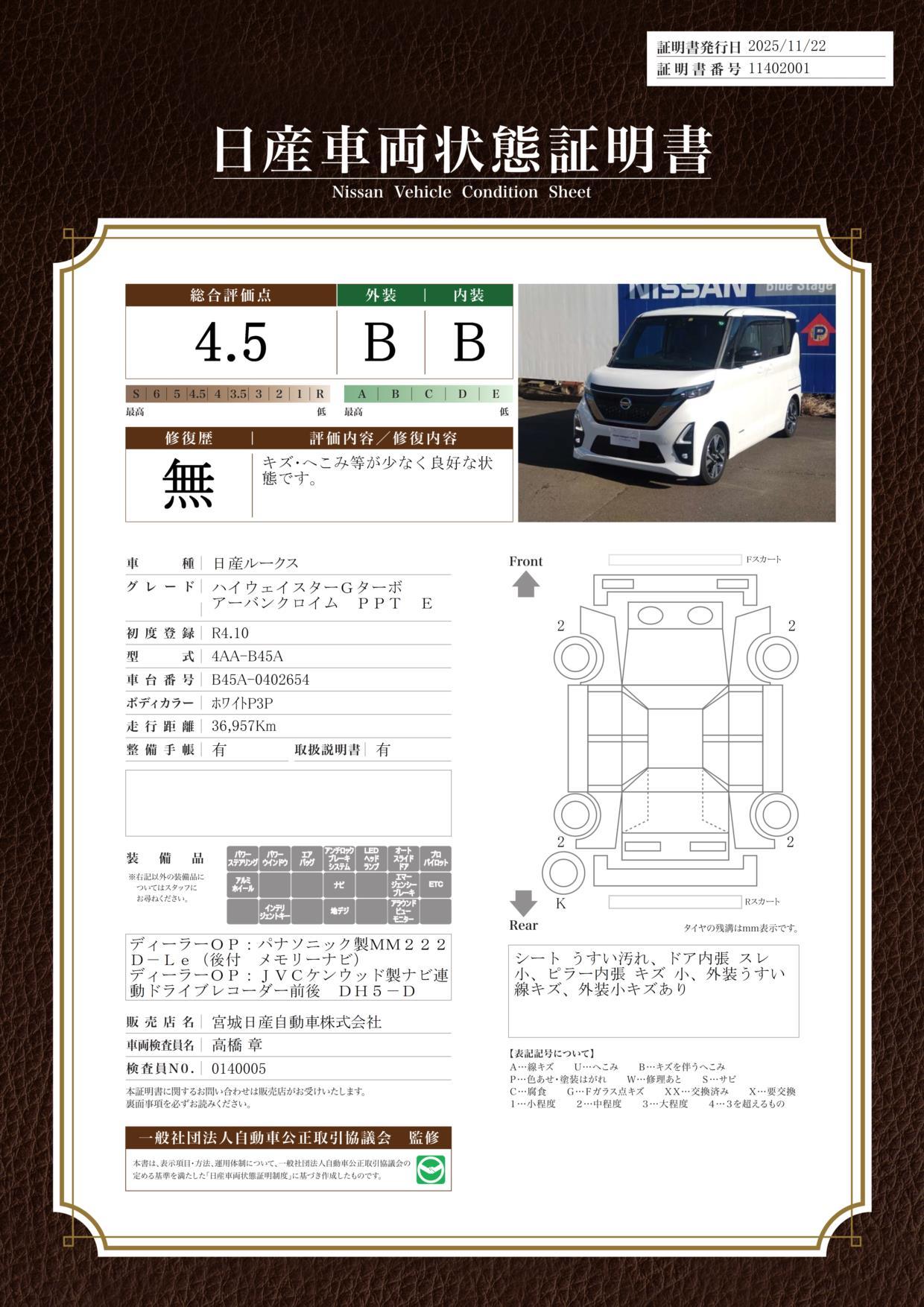 車両保証(ルークス ハイウェイスターGタボアバンクロムプロパイロットED:宮城日産自動車(株) カートピア扇町)