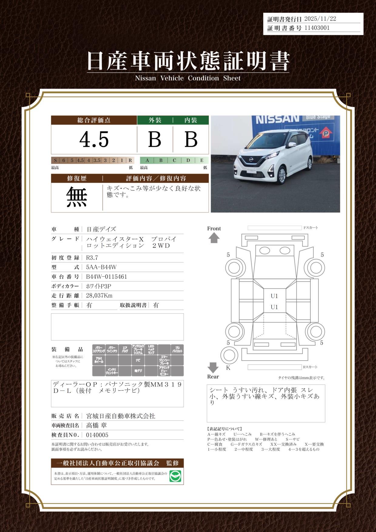 車両保証(デイズ ハイウェイスター X プロパイロットエディション:宮城日産自動車(株) カートピア扇町)