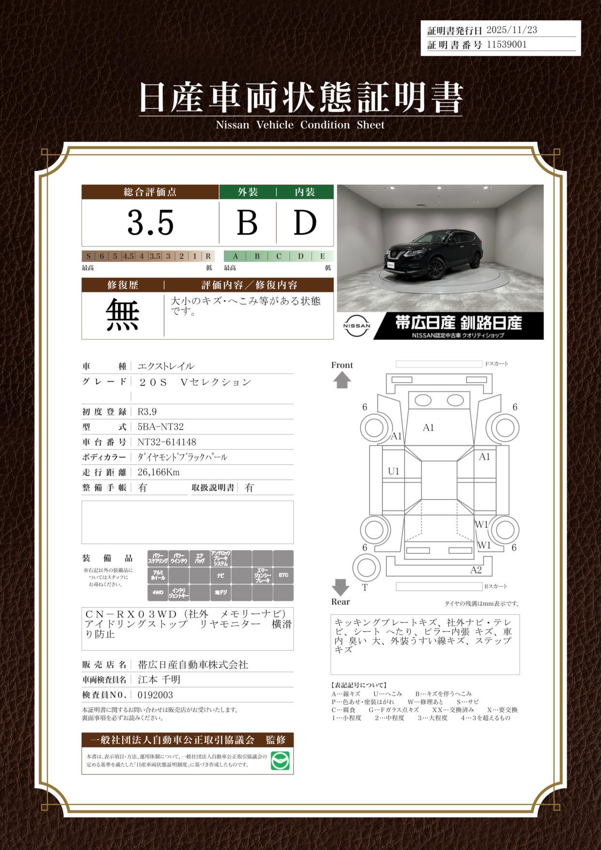 車両保証(エクストレイル 20S Vセレクション:釧路日産 釧路本店)