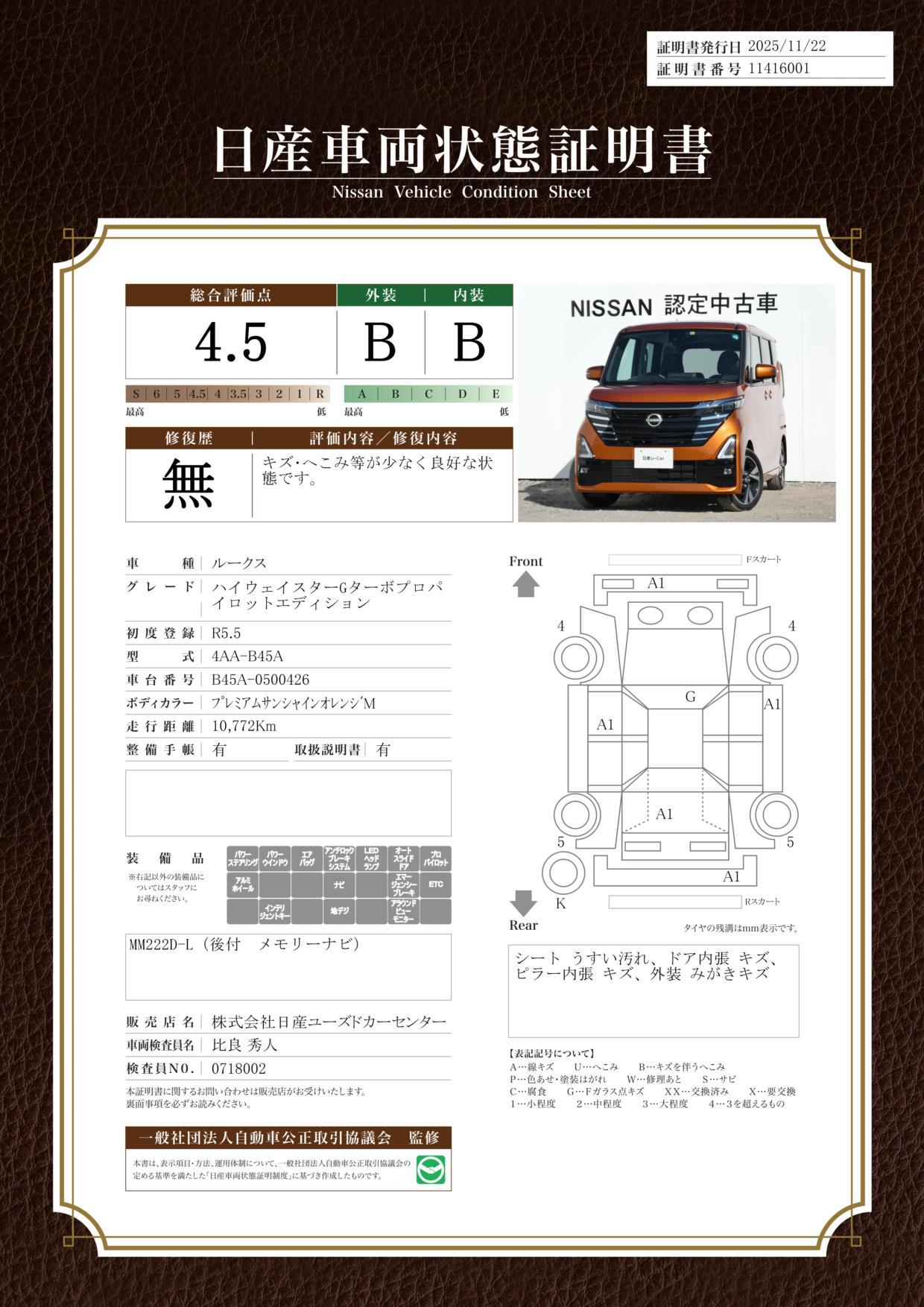 | 車両状態評価書 | ※クリックすると開きます![]() |