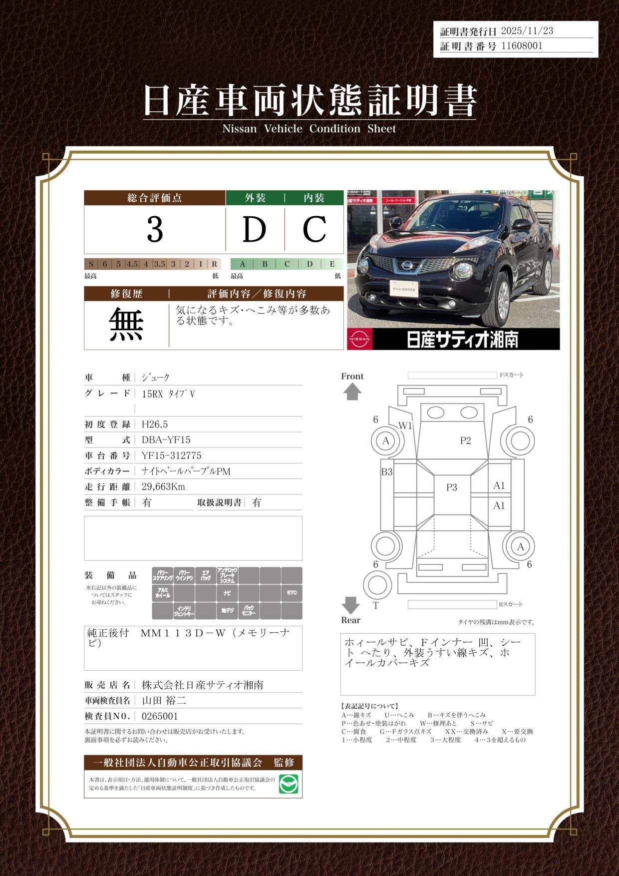 車両保証(ジューク 15RX タイプV:(株)日産サティオ湘南 ユーカーマーケット平塚)
