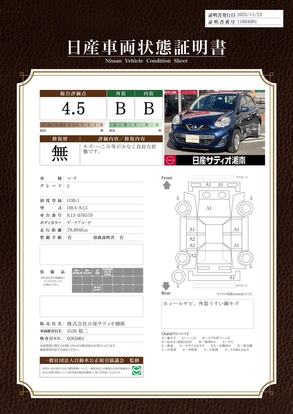 車両保証(マーチ S:(株)日産サティオ湘南 ユーカーマーケット平塚)