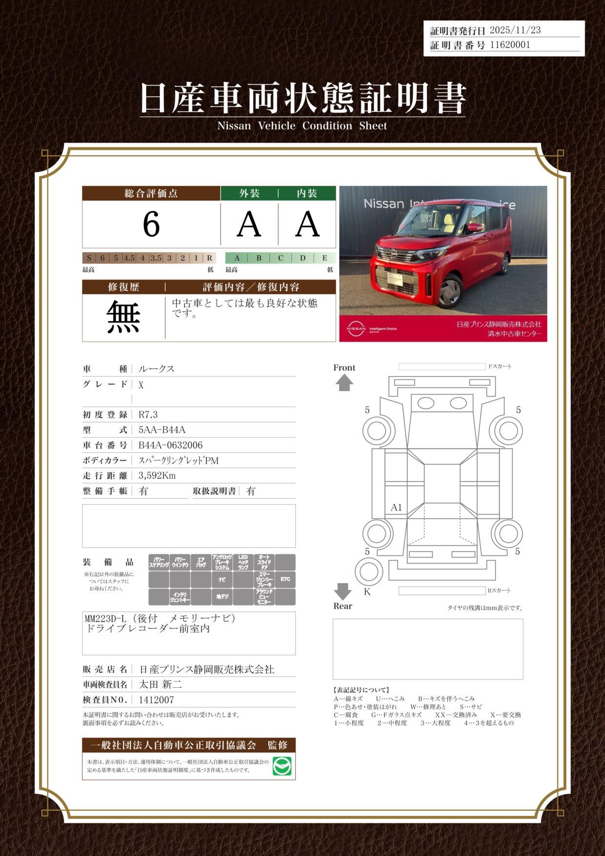 車両保証(ルークス X:日産プリンス静岡販売 清水中古車センター)