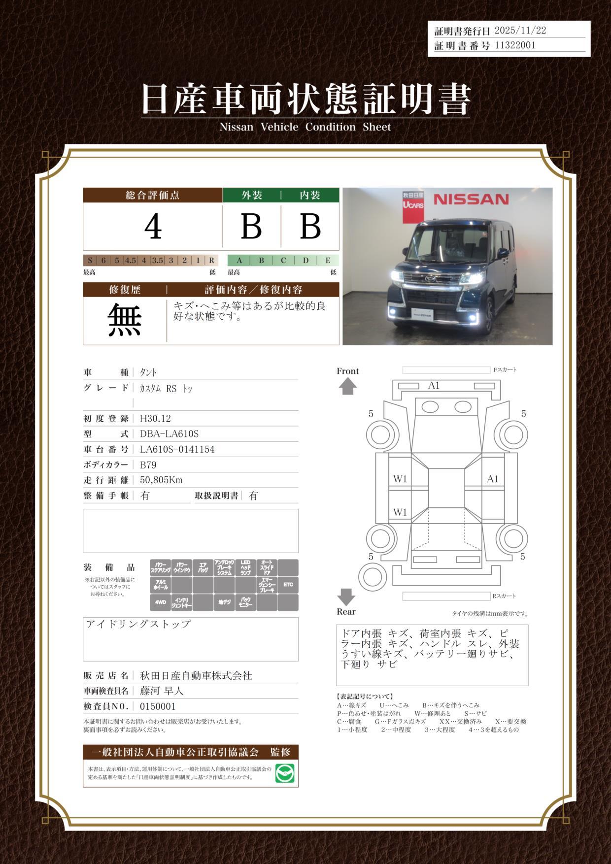 車両保証(タント カスタムRS トップエディションVS SAIII:秋田日産自動車(株) 臨海店)