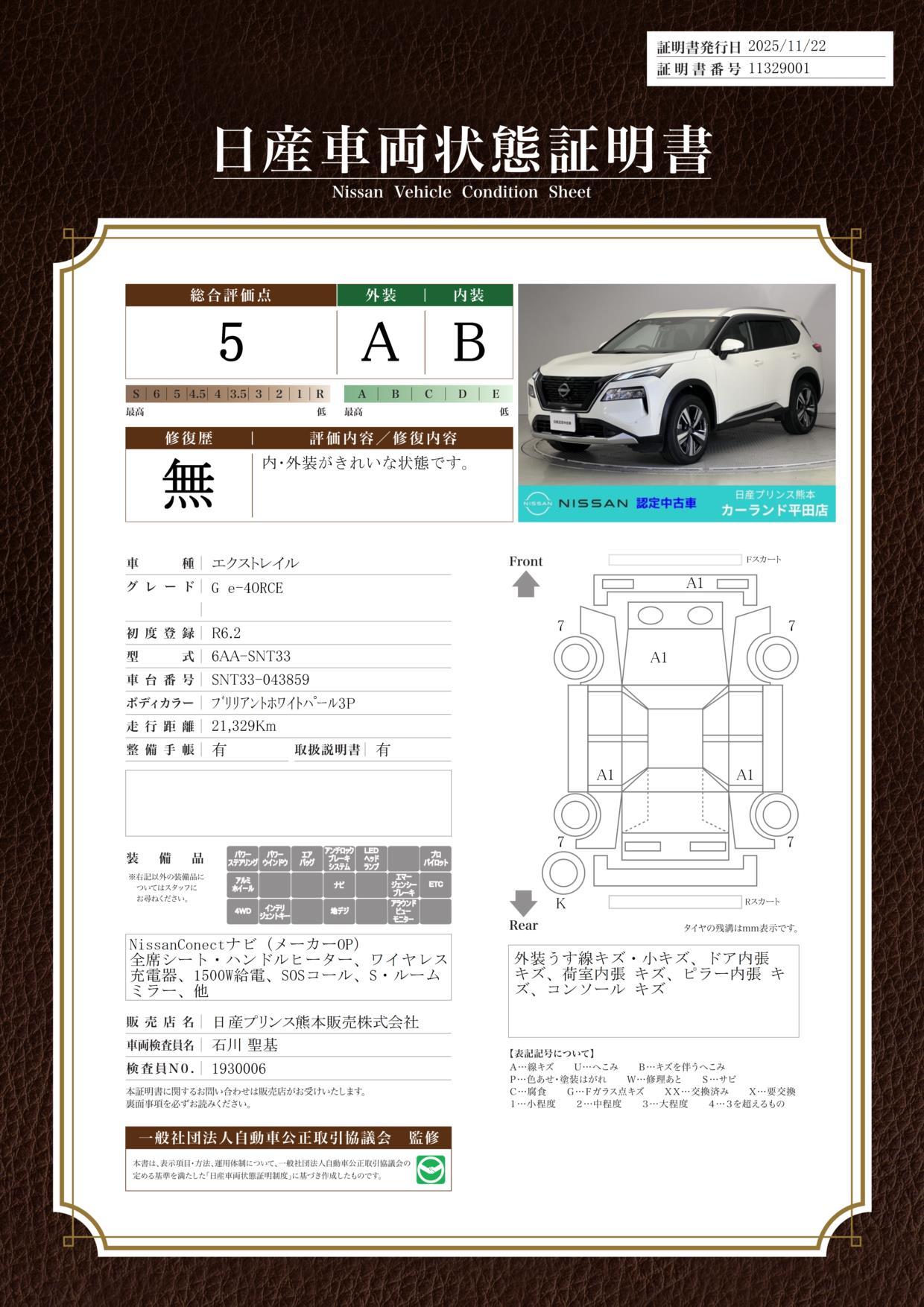 車両保証(エクストレイル G e-4ORCE:日産プリンス熊本販売(株)カーランド平田店)