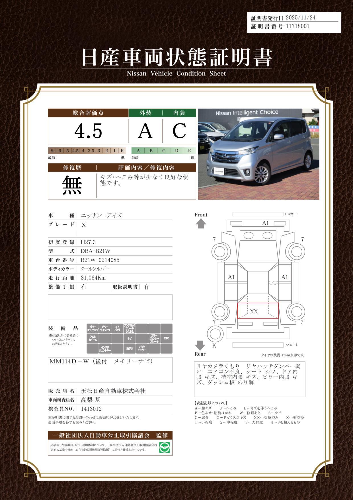 車両保証(デイズ ハイウェイスター X:浜松日産自動車(株) Ucars宮竹店)