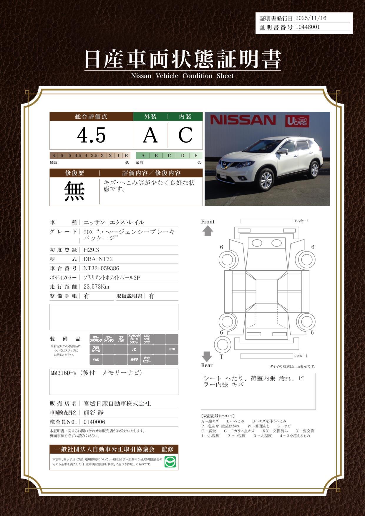 車両保証(エクストレイル 20X エマージェンシーブレーキパッケージ:宮城日産自動車(株) カートピア気仙沼)