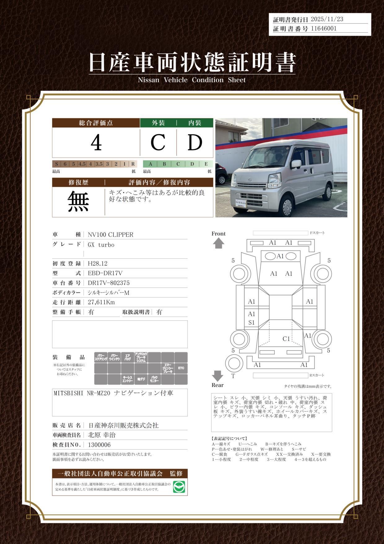 車両保証(NV100クリッパーバン GXターボ:日産神奈川販売株式会社 Carスクエア相模原)