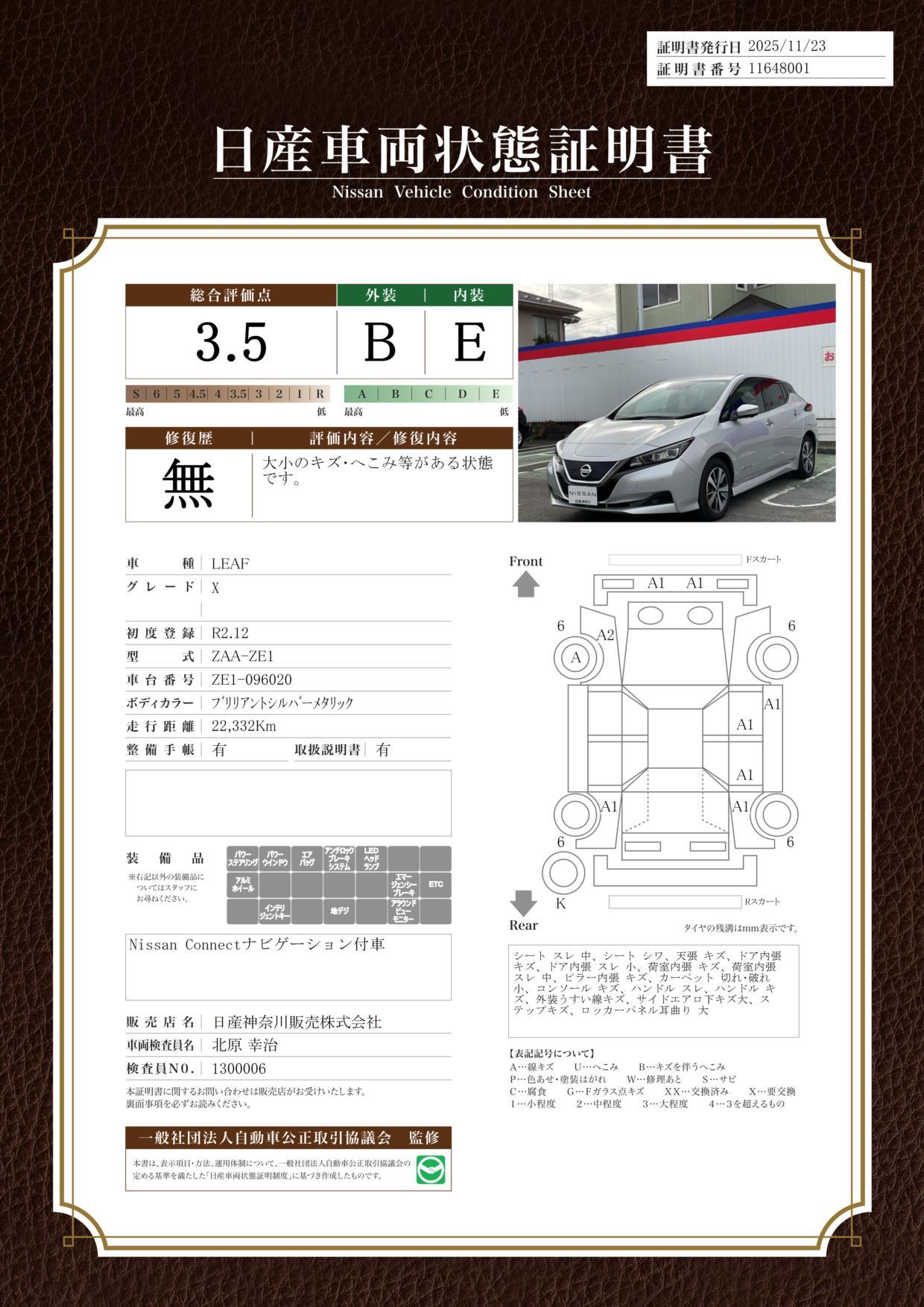 車両保証(リーフ X:日産神奈川販売株式会社 Carスクエア相模原)