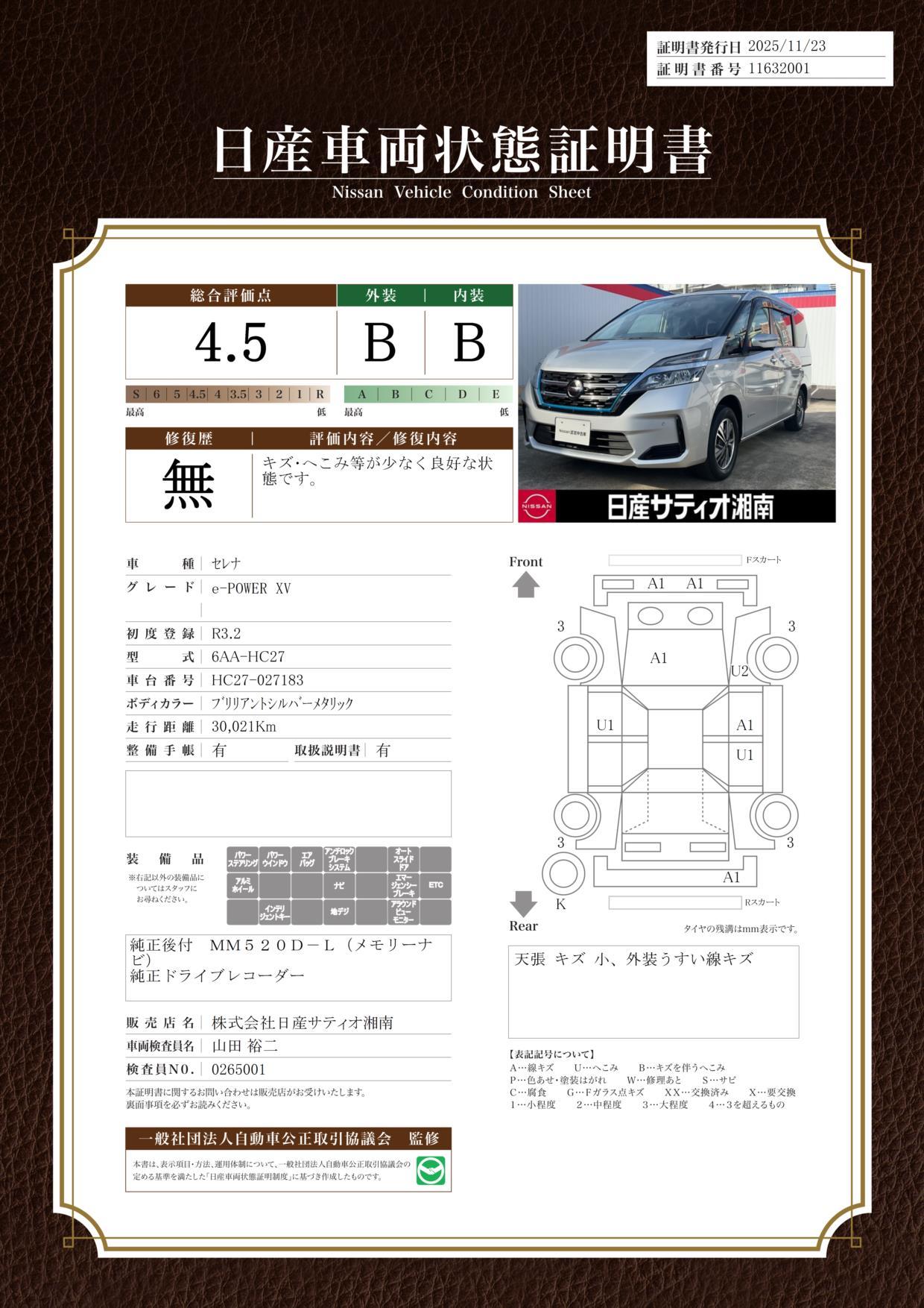 車両保証(セレナ e-パワー XV:(株)日産サティオ湘南 ユーカーマーケット茅ヶ崎)