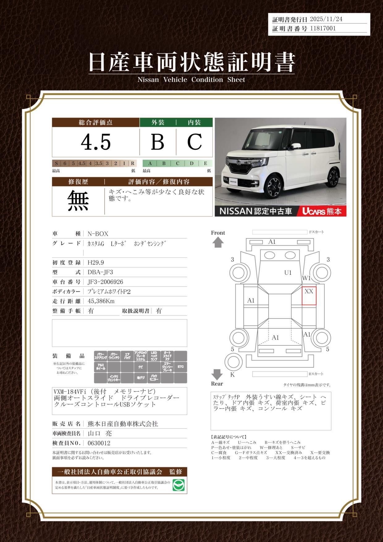 車両保証(N-BOXカスタム G・Lターボホンダセンシング:熊本日産自動車(株)ユーカーズ熊本)