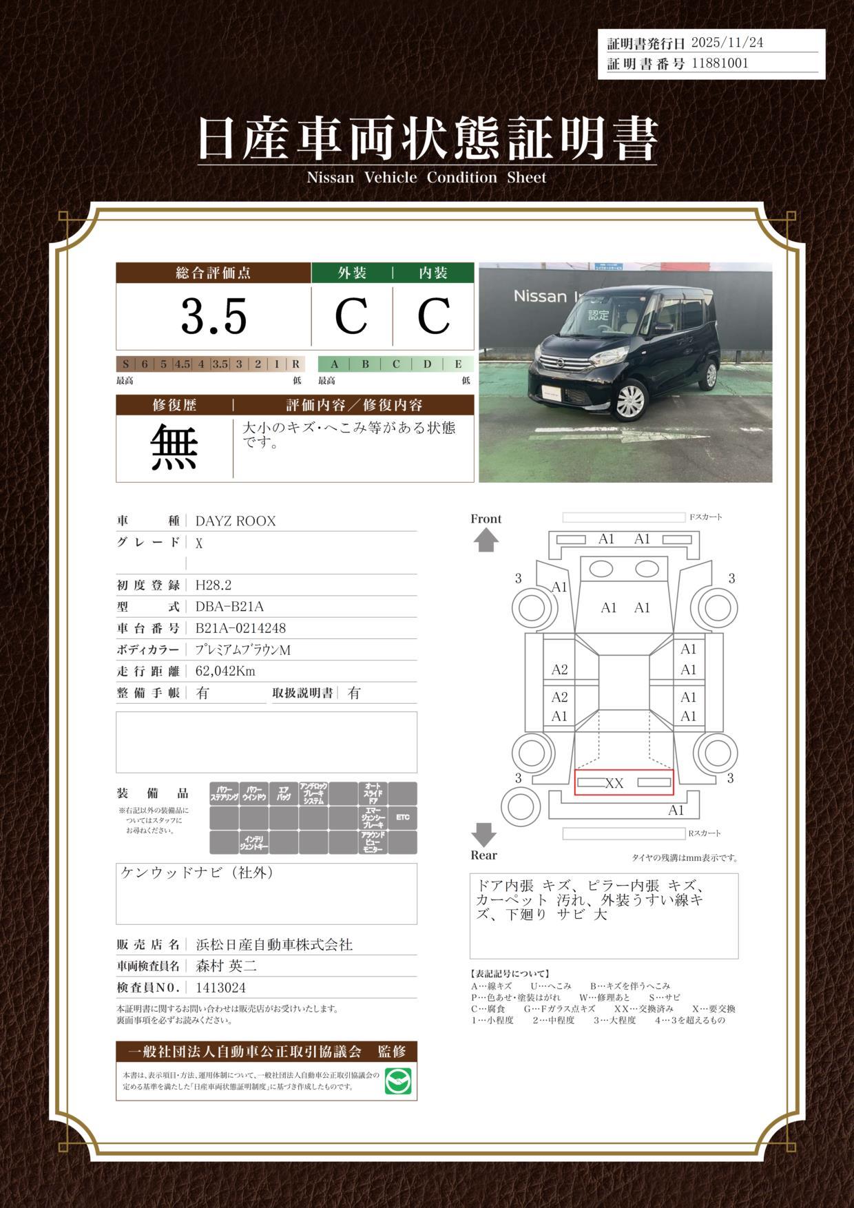 | 車両状態評価書 | ※クリックすると開きます![]() |