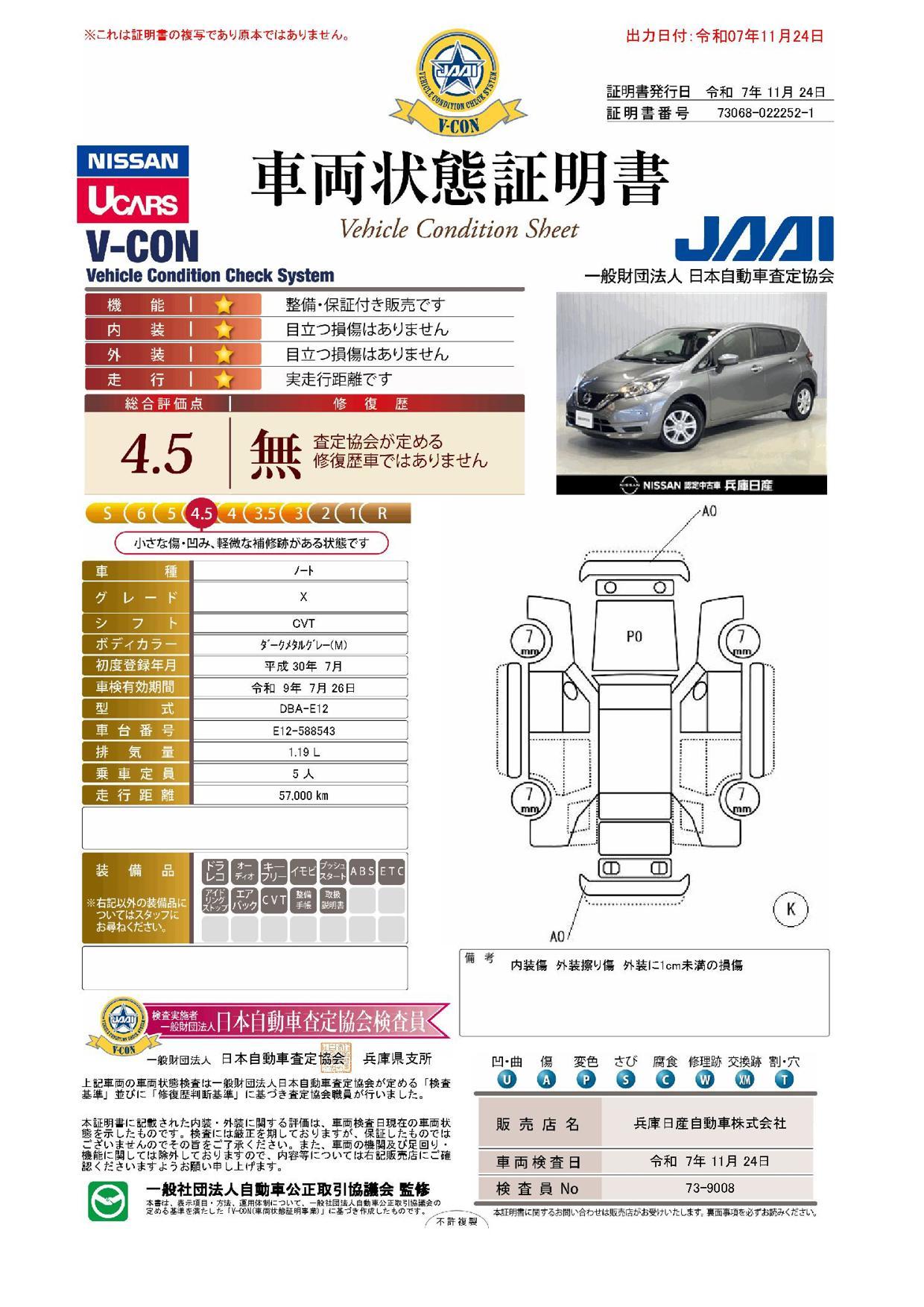 車両保証(ノート X:兵庫日産自動車株式会社 カーパレス姫路)
