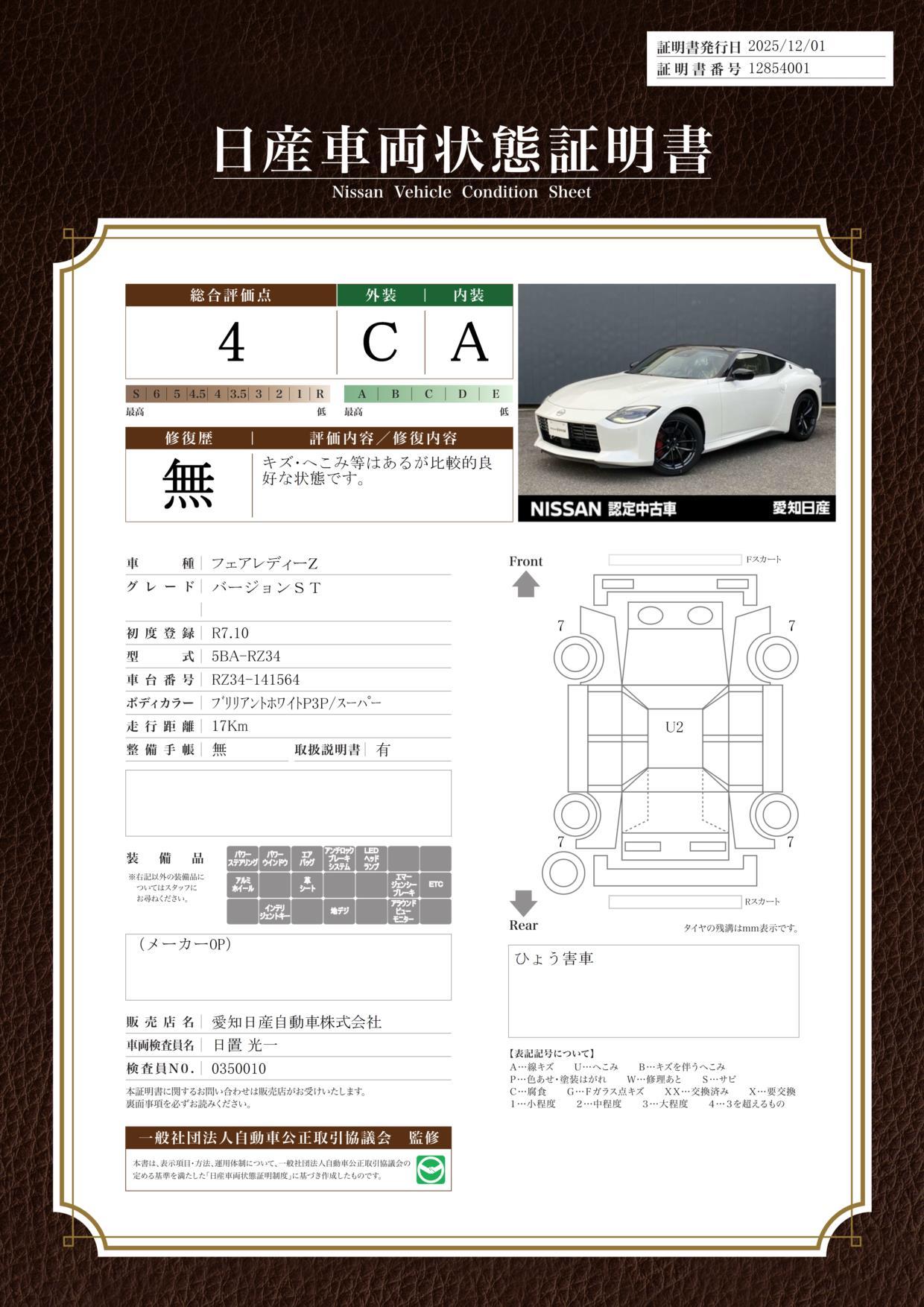 車両保証(フェアレディZ バージョンST:愛知日産自動車(株) 滝ノ水センター)