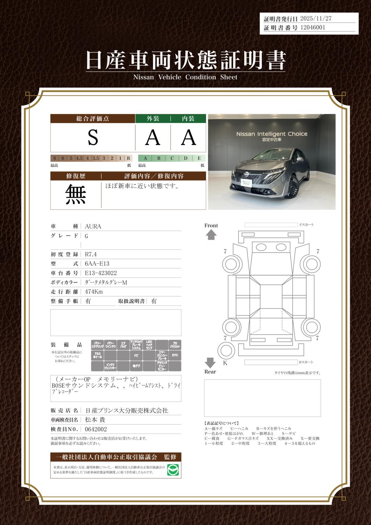 車両保証(オーラ G:日産プリンス大分販売(株)大分本店)