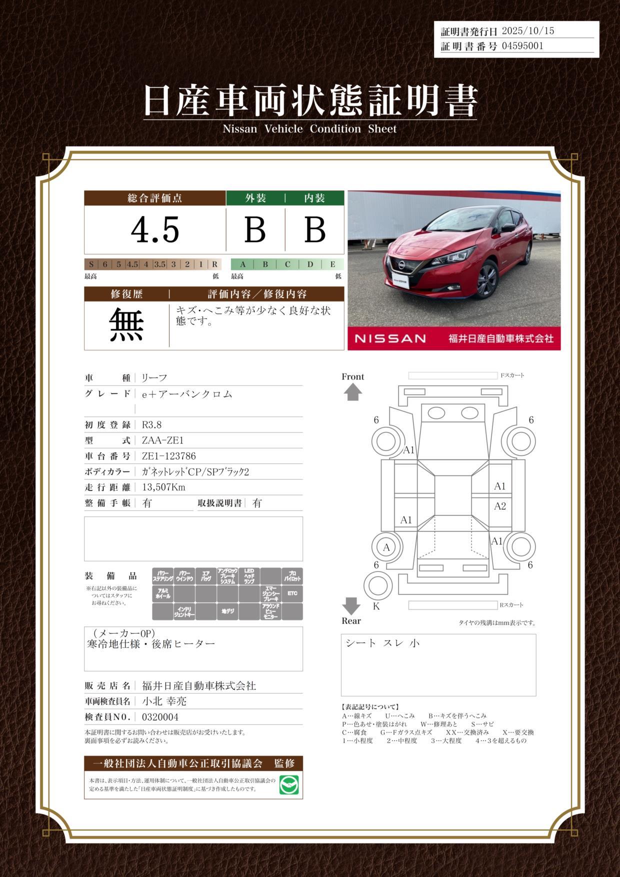 車両保証(リーフ e+ X アーバンクロム:福井日産自動車(株) くるまの広場)