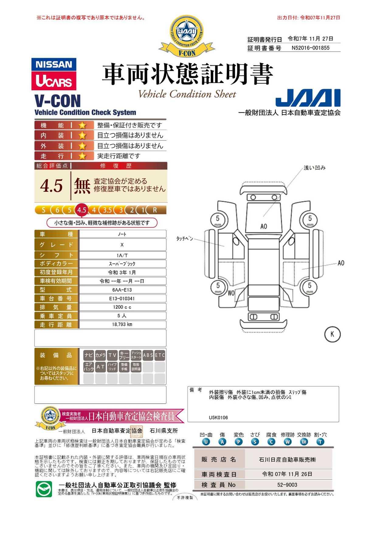車両保証(ノート X:石川日産自動車販売(株) UCARS小松)