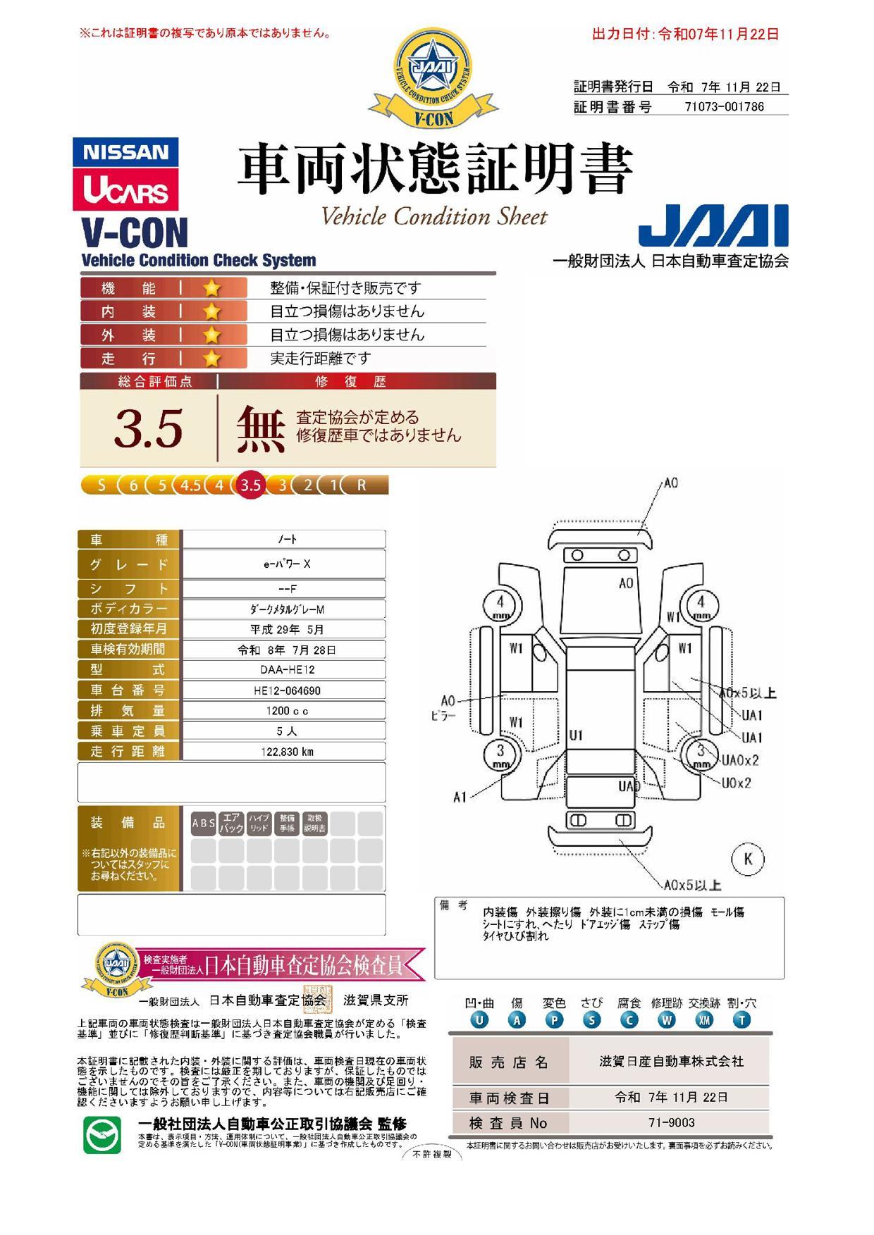 車両保証(ノート e-パワー X:滋賀日産自動車U-CARファクトリー大津)