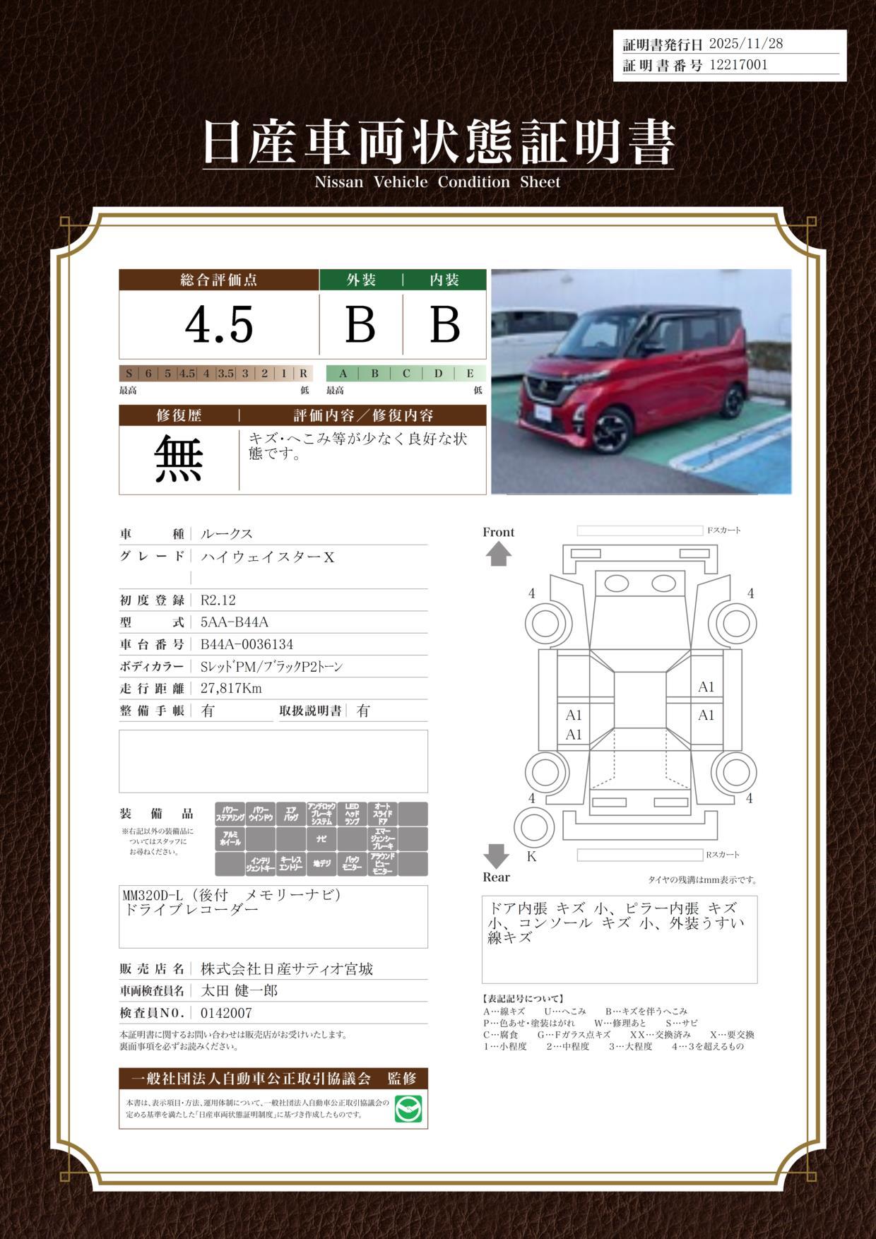 車両保証(ルークス ハイウェイスター X:(株)日産サティオ宮城 Uカー加茂店)