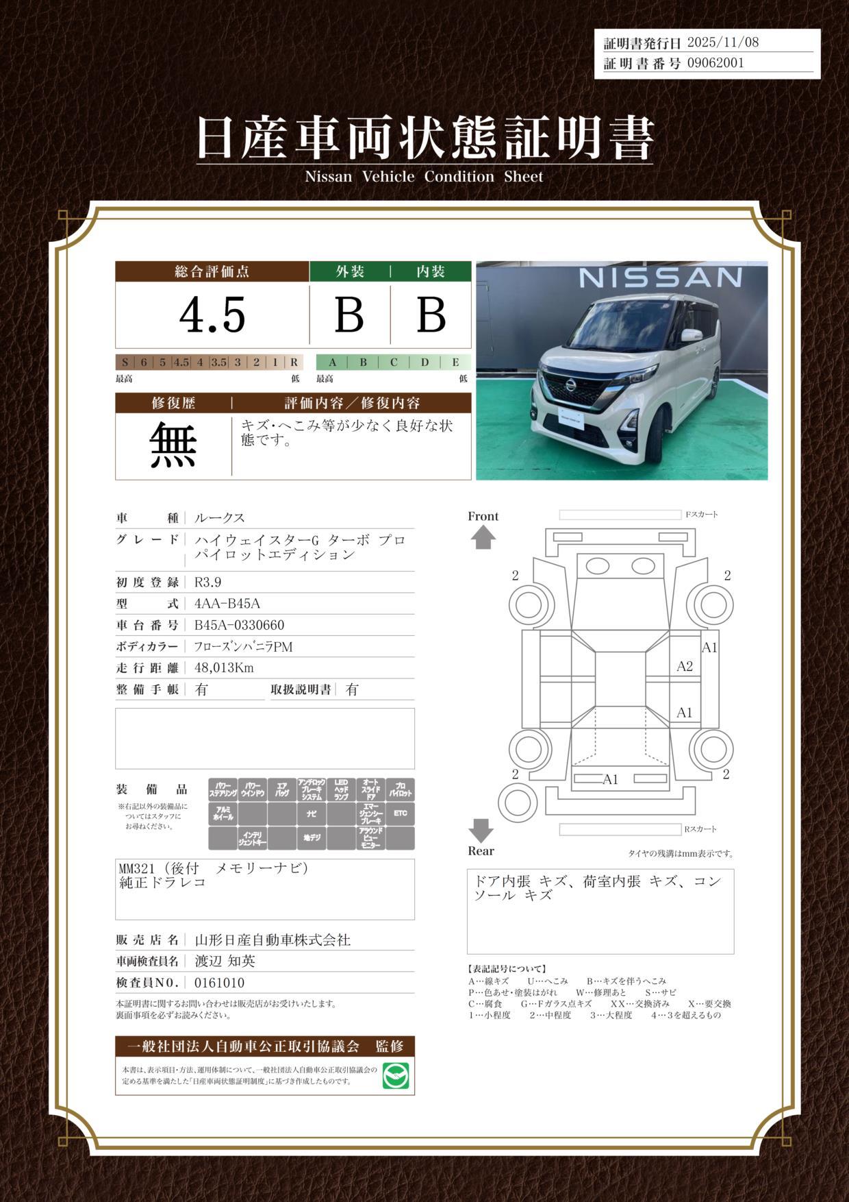 | 車両状態評価書 | ※クリックすると開きます![]() |
