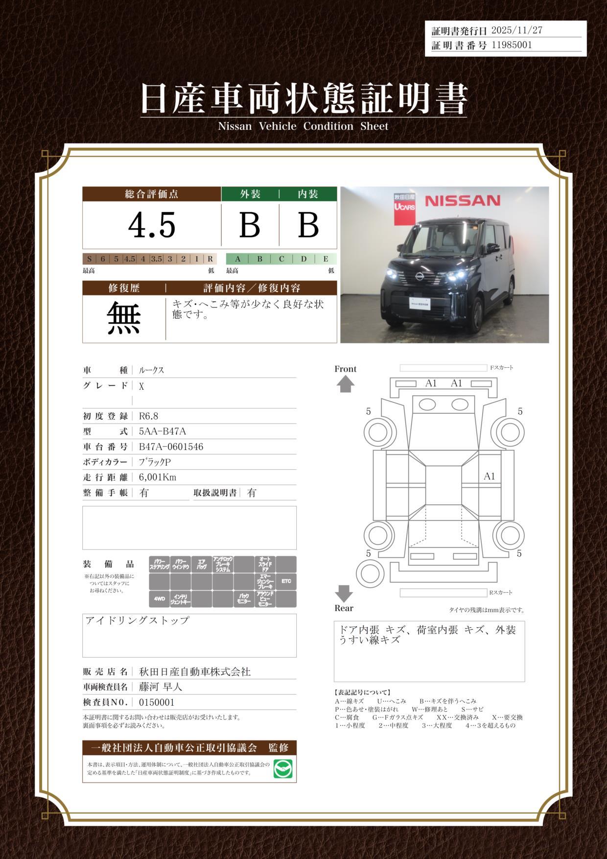 車両保証(ルークス X:秋田日産自動車(株) 本荘店)