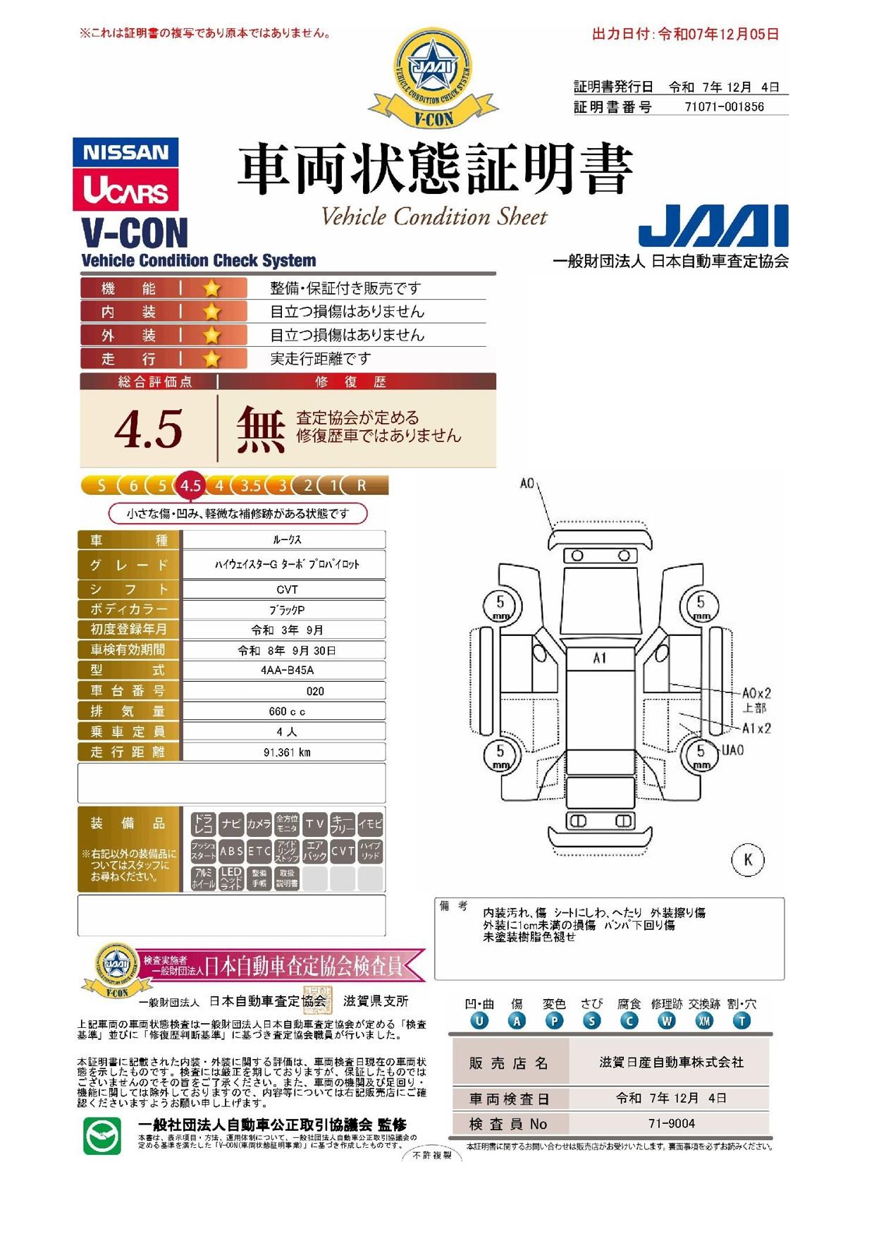 | 車両状態評価書 | ※クリックすると開きます![]() |
