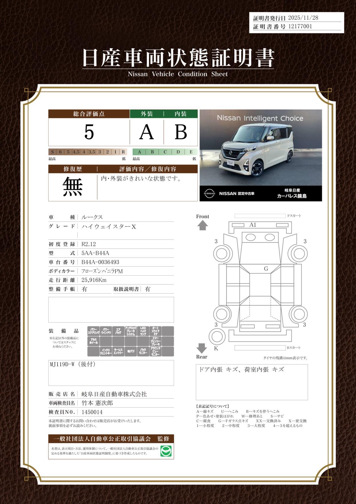車両保証(ルークス ハイウェイスター X:岐阜日産自動車(株) カーパレス鏡島)