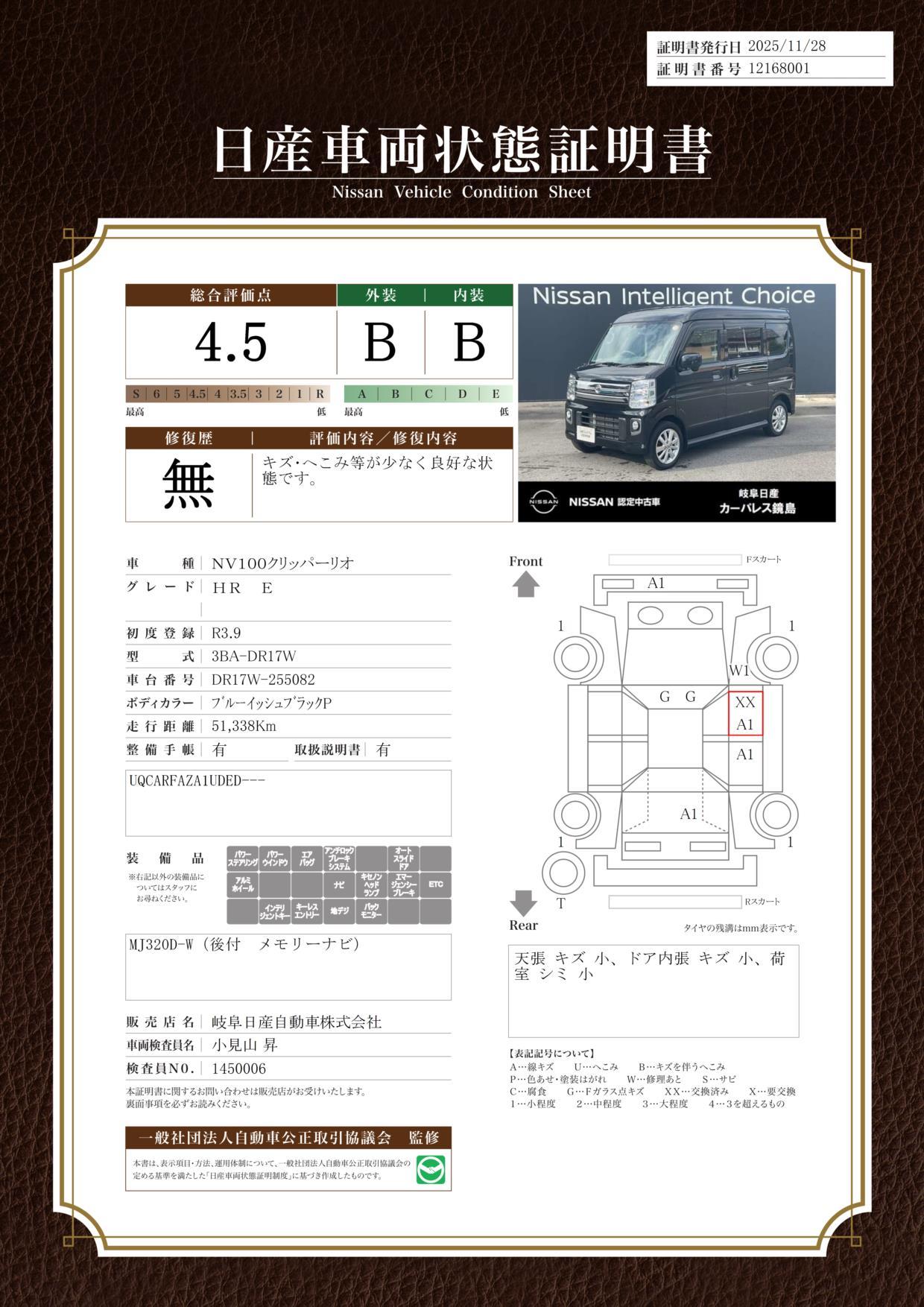 車両保証(NV100クリッパーリオ E:岐阜日産自動車(株) カーパレス鏡島)