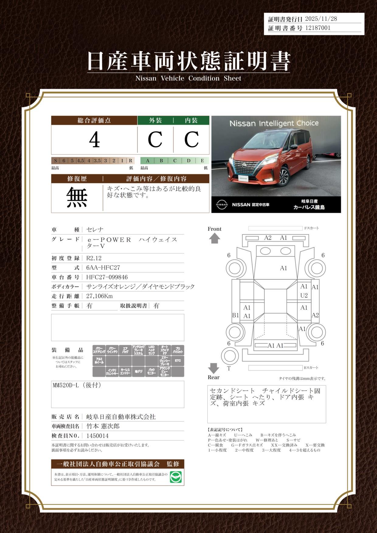 車両保証(セレナ e-パワー ハイウェイスターV:岐阜日産自動車(株) カーパレス鏡島)