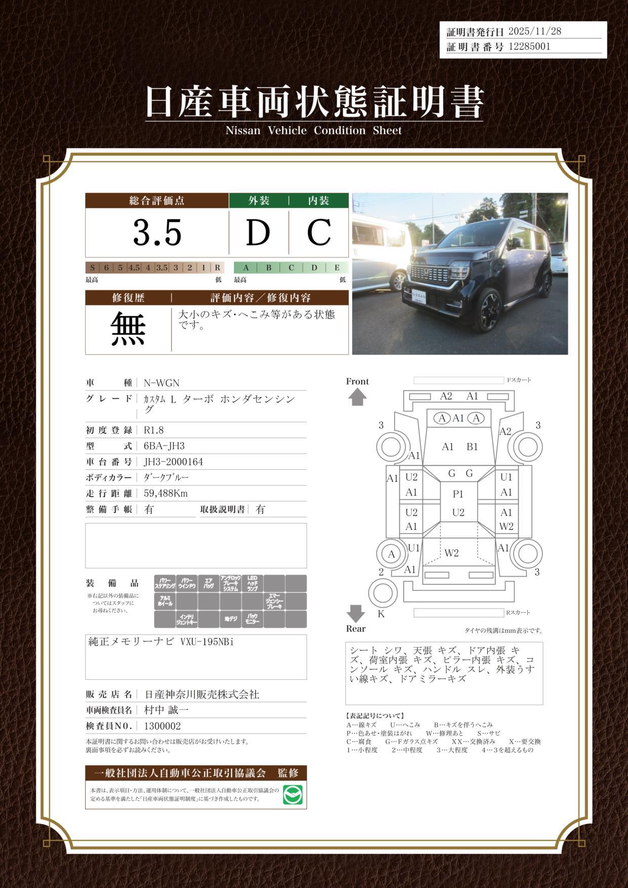 車両保証(N-WGNカスタム L・ターボホンダセンシング:日産神奈川販売株式会社 Carスクエア東名横浜)