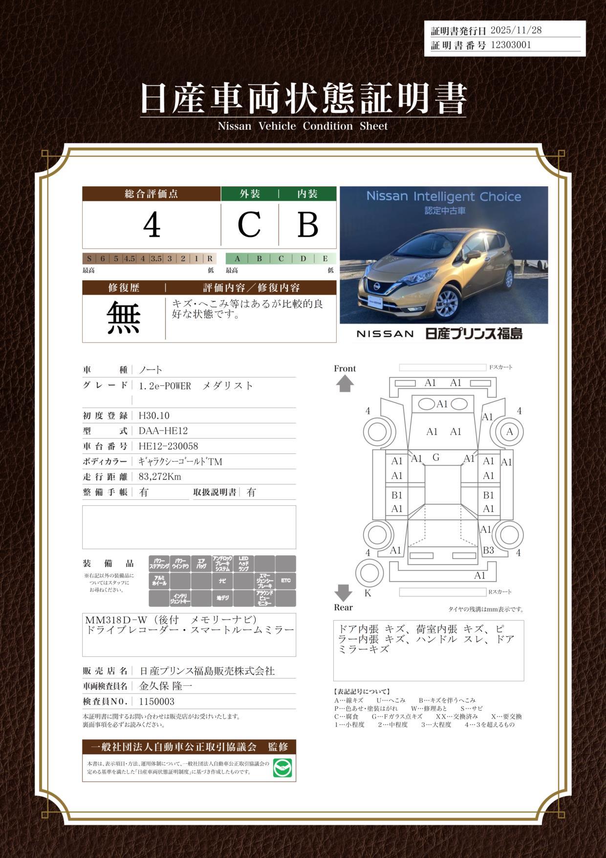 車両保証(ノート e-パワー メダリスト:日産プリンス福島販売(株) Pステージ23)