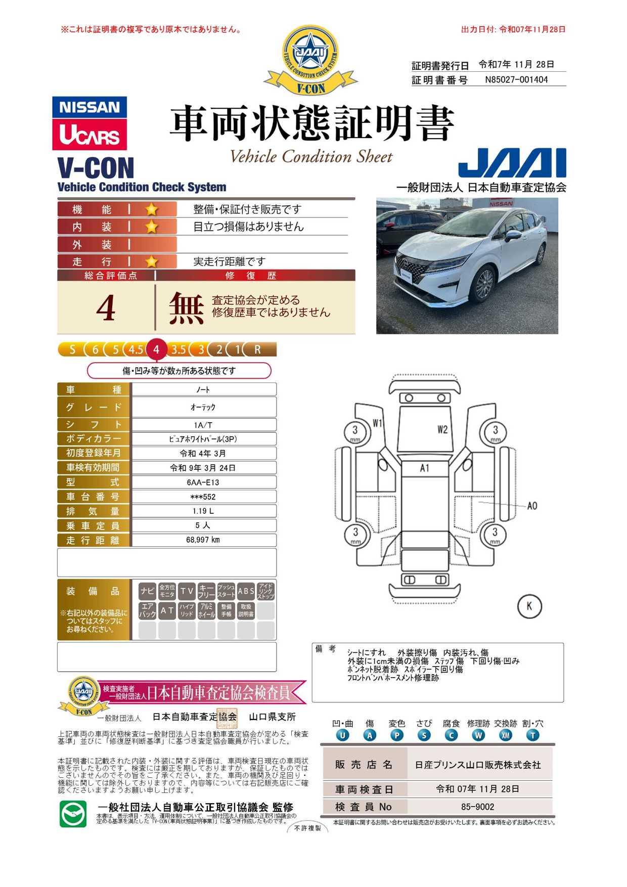 車両保証(ノート オーテック:日産プリンス山口販売(株) 下松店)