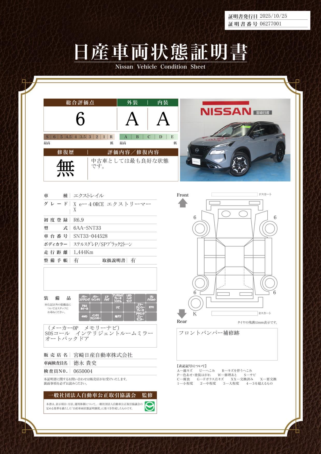 車両保証(エクストレイル S e-4ORCE:宮崎日産自動車 都城カーセンター)