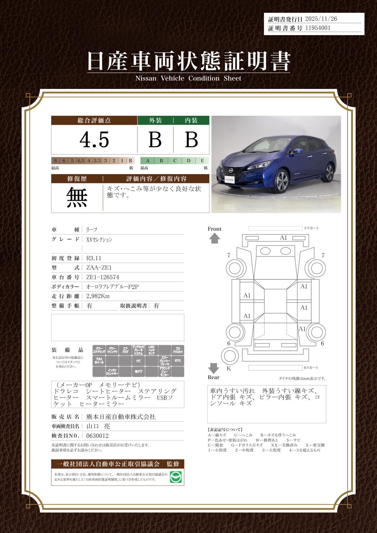 車両保証(リーフ X Vセレクション:熊本日産自動車 ユーカーズ天草)