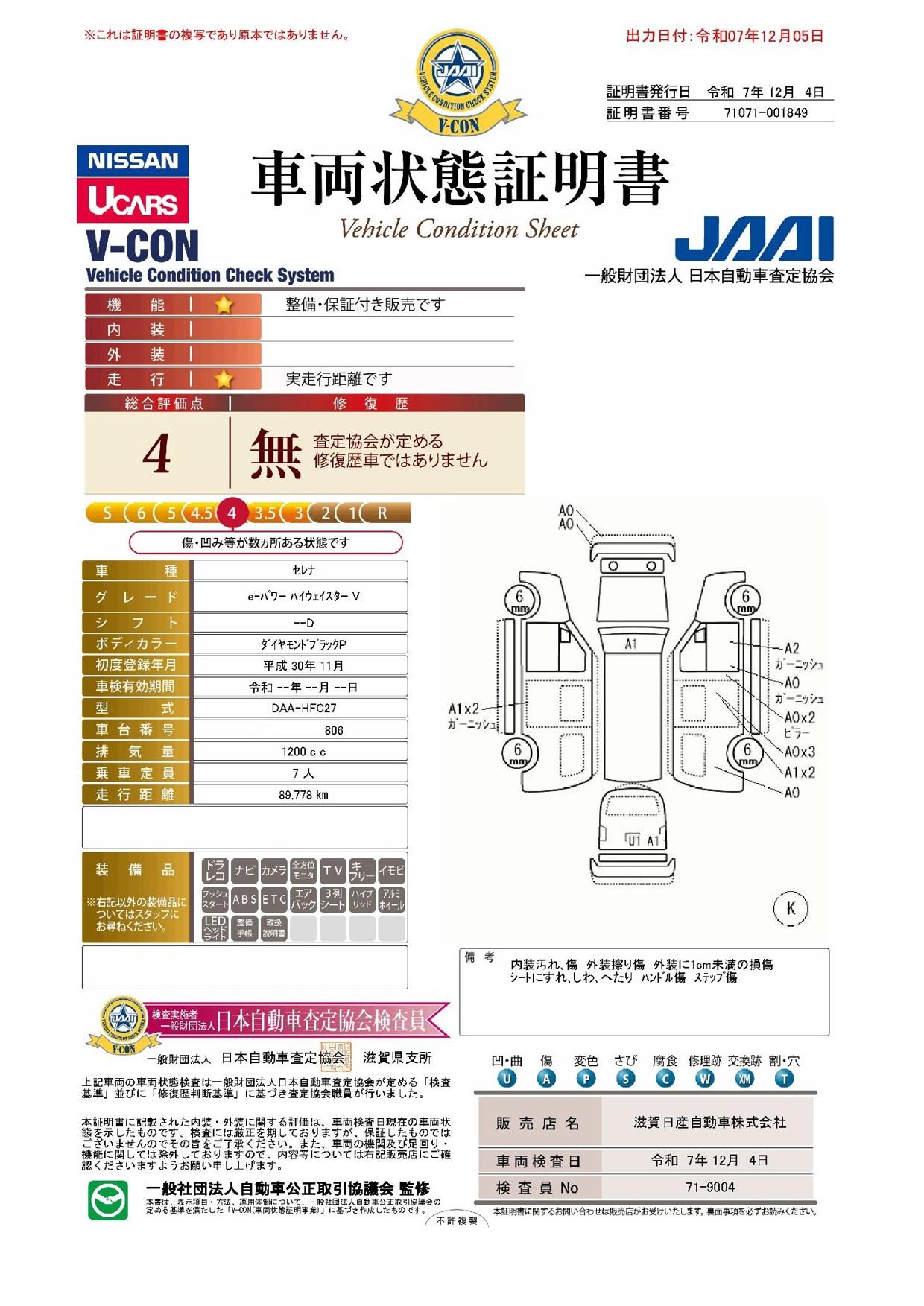 車両保証(セレナ e-パワー ハイウェイスターV:滋賀日産自動車U-CARファクトリー水口)