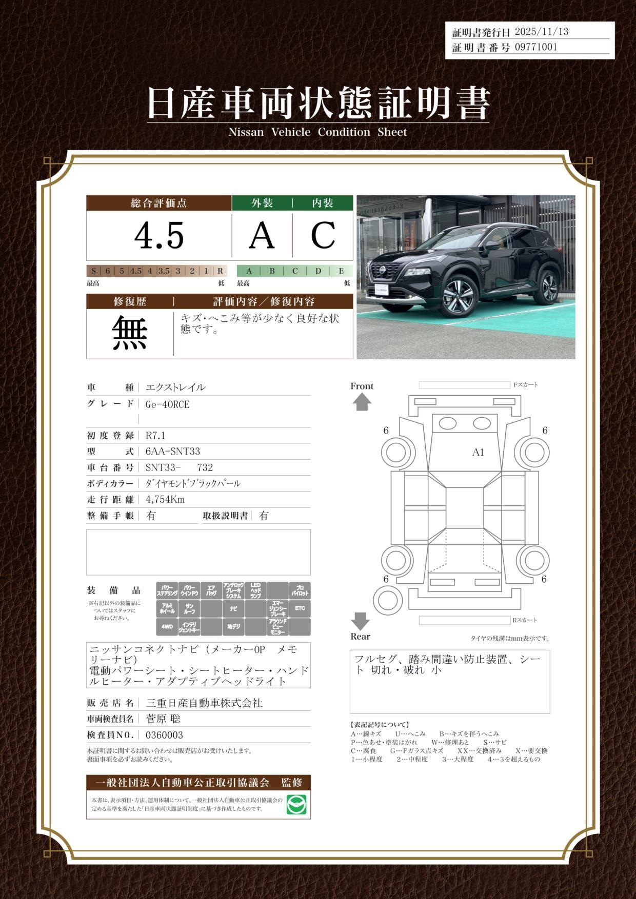 車両保証(エクストレイル G e-4ORCE:三重日産自動車(株) 伊勢神久店)