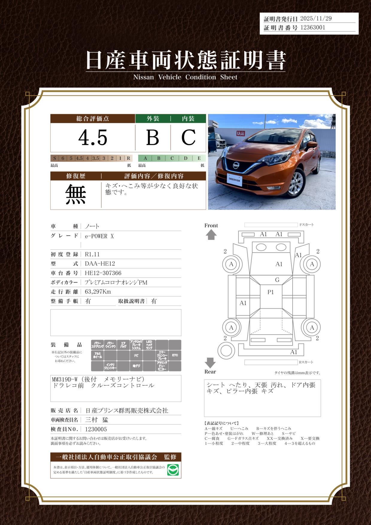 車両保証(ノート e-パワー X:日産プリンス群馬販売(株) カーステージ高崎)