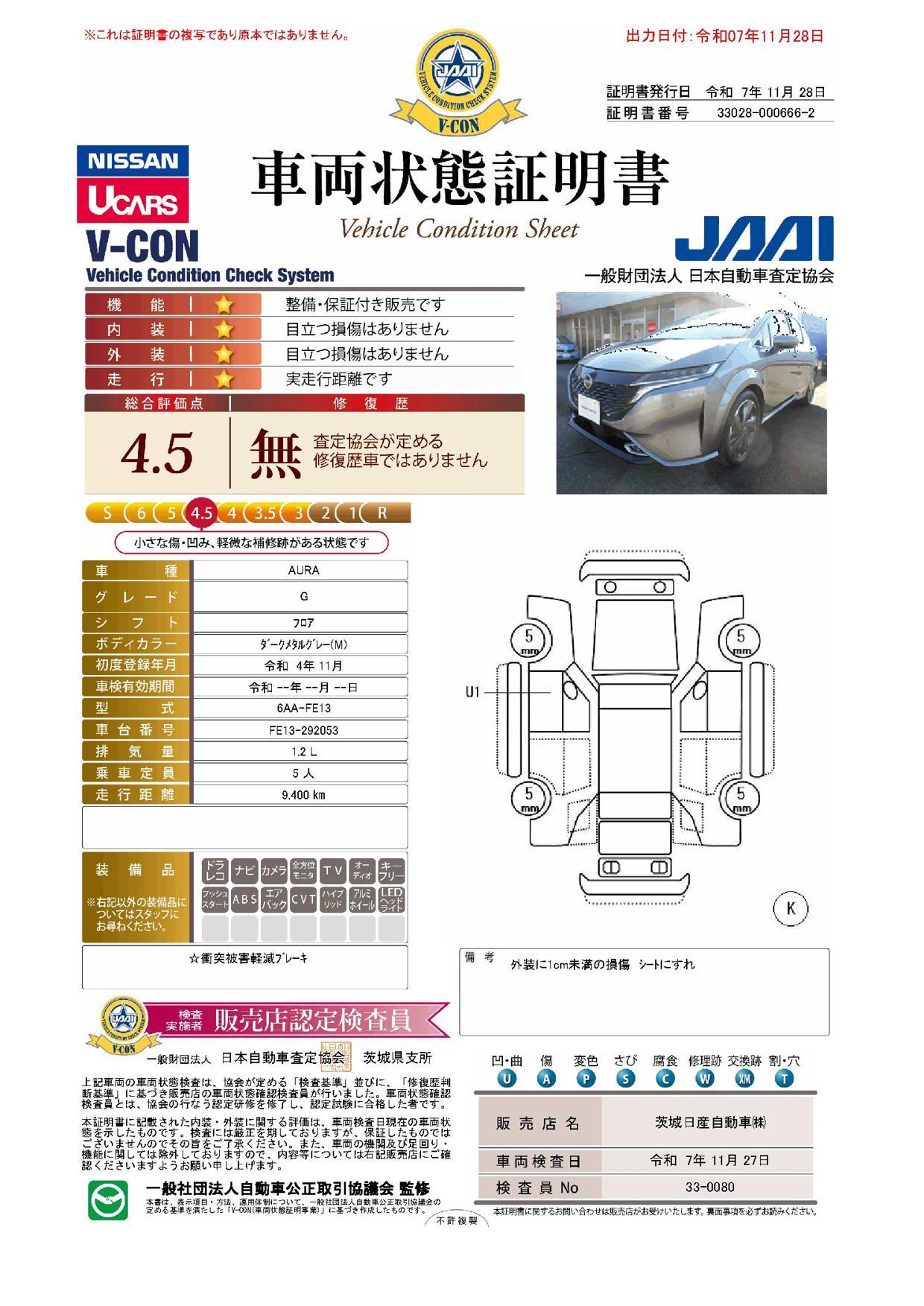 車両保証(オーラ G:茨城日産自動車(株)U-Cars古河店)