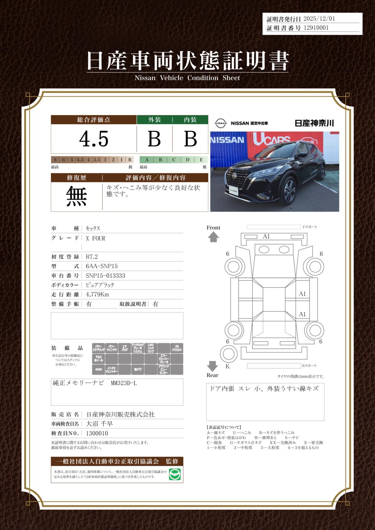 車両保証(キックス X FOUR:日産神奈川販売株式会社 Carスクエア横須賀)