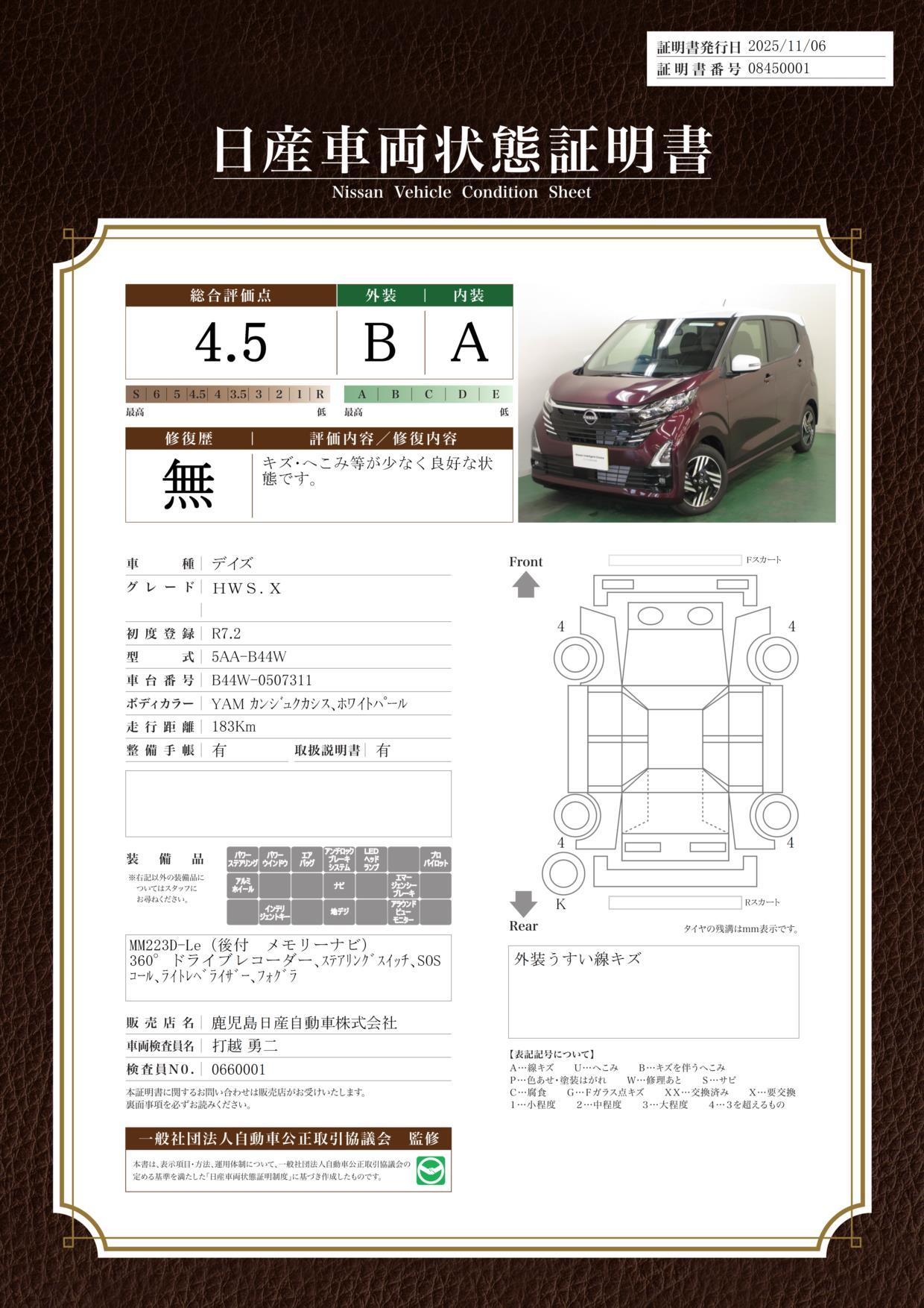 | 車両状態評価書 | ※クリックすると開きます![]() |